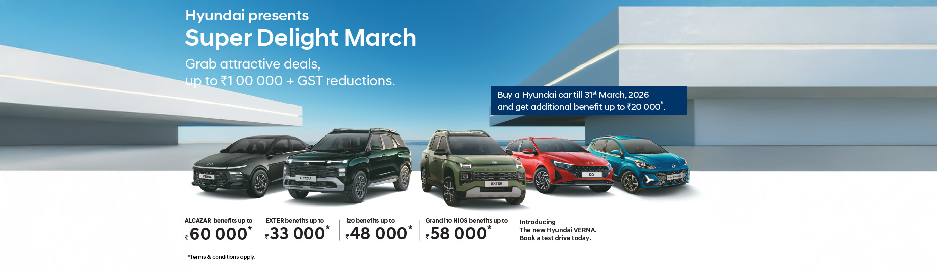 • There is a huge product range of 10 models in all segments from 3.5 lacs. to 40 lacs. price range available at Orange Hyundai.